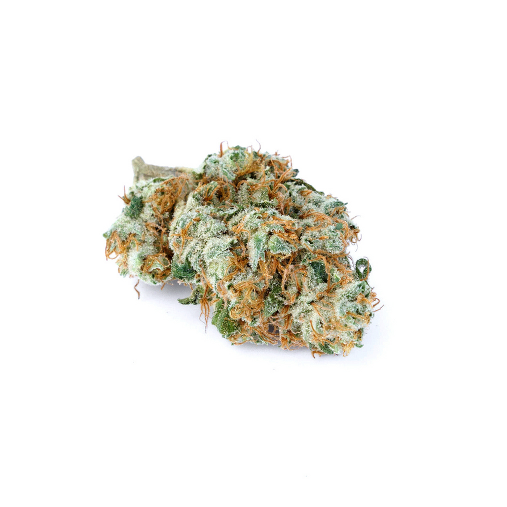 Guava Gas presents itself with medium to large-sized buds that are tight and dense, showcasing a captivating array of colors. The primary hues are shades of light green with bright orange pistils weaving throughout.
