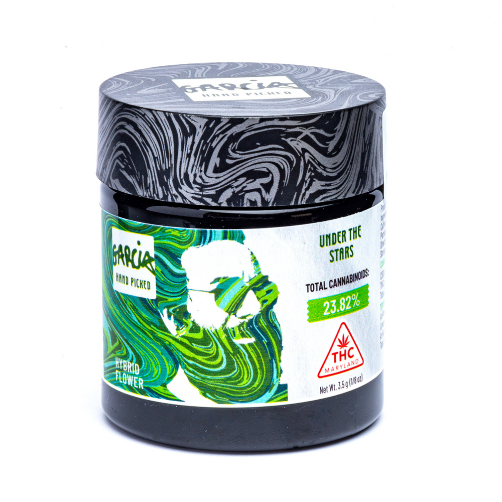 Under the Stars by Garcia Hand Picked, recently picked up at Liberty Cannabis in Rockville, pays homage to Jerry Garcia’s artistic legacy, blending top-tier cannabis with a spirit of creativity and fun. Inspired by the 1978 album Cats Under the Stars, this strain captures the essence of a starry night infused with music, community, and adventure. With its unique genetics and quality craftsmanship, it’s a cosmic journey in a jar, designed to transport you to your own “Terrapin Station.”